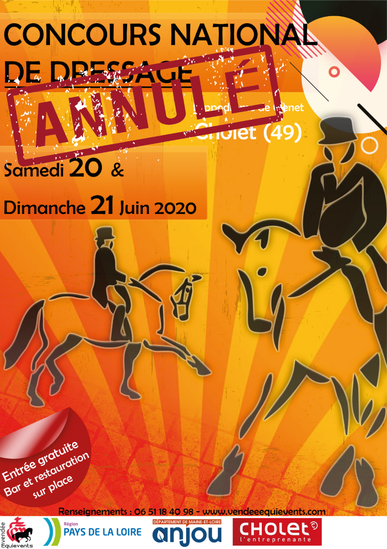 Vendée EquiEvents organise pour la deuxième fois un Concours National de Dressage Amateur, Pro et Club dans le magnifique cadre de l'hippodrome de Clénet à Cholet (49). Plus de 200 dresseurs venant de tout l'Ouest sont attendus pour ce grand week-end de spectacle ! Le dressage est la symbiose entre le cavalier et son destrier, l'entente parfaite est obligatoire pour démontrer les plus belles figures naturelles du cheval ! Venez admirer ce moment sportif et décontractant seul ou en famille, en connaisseur ou en néophyte.