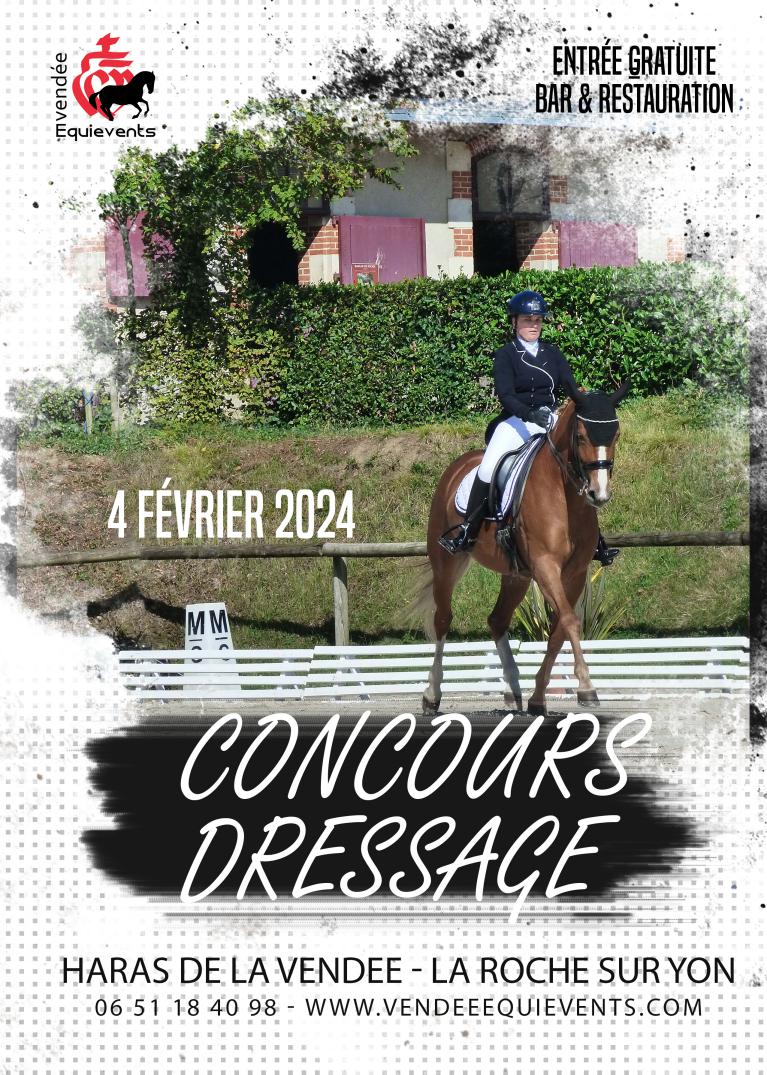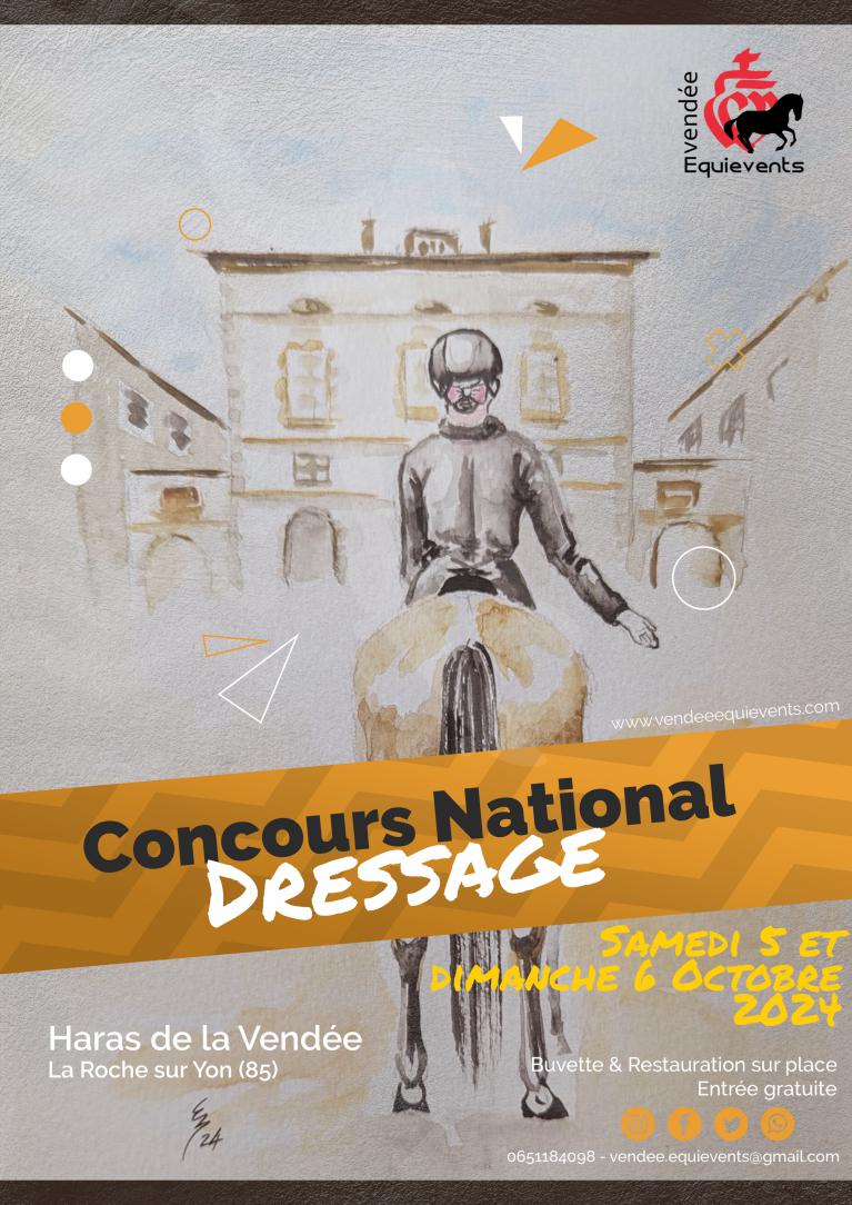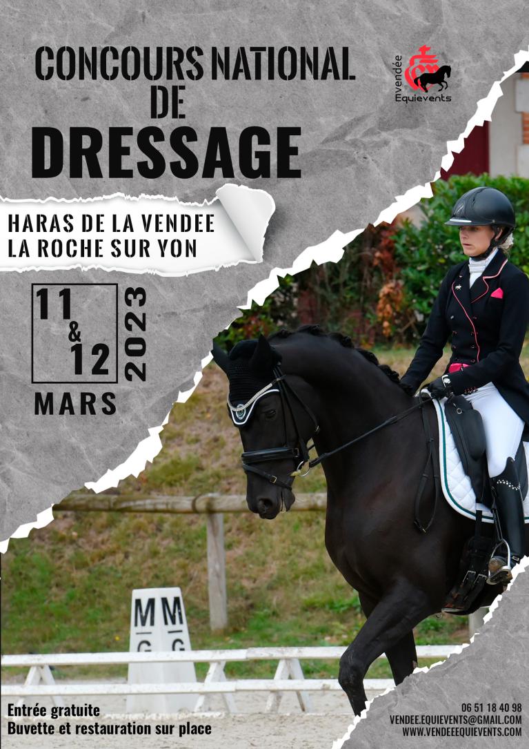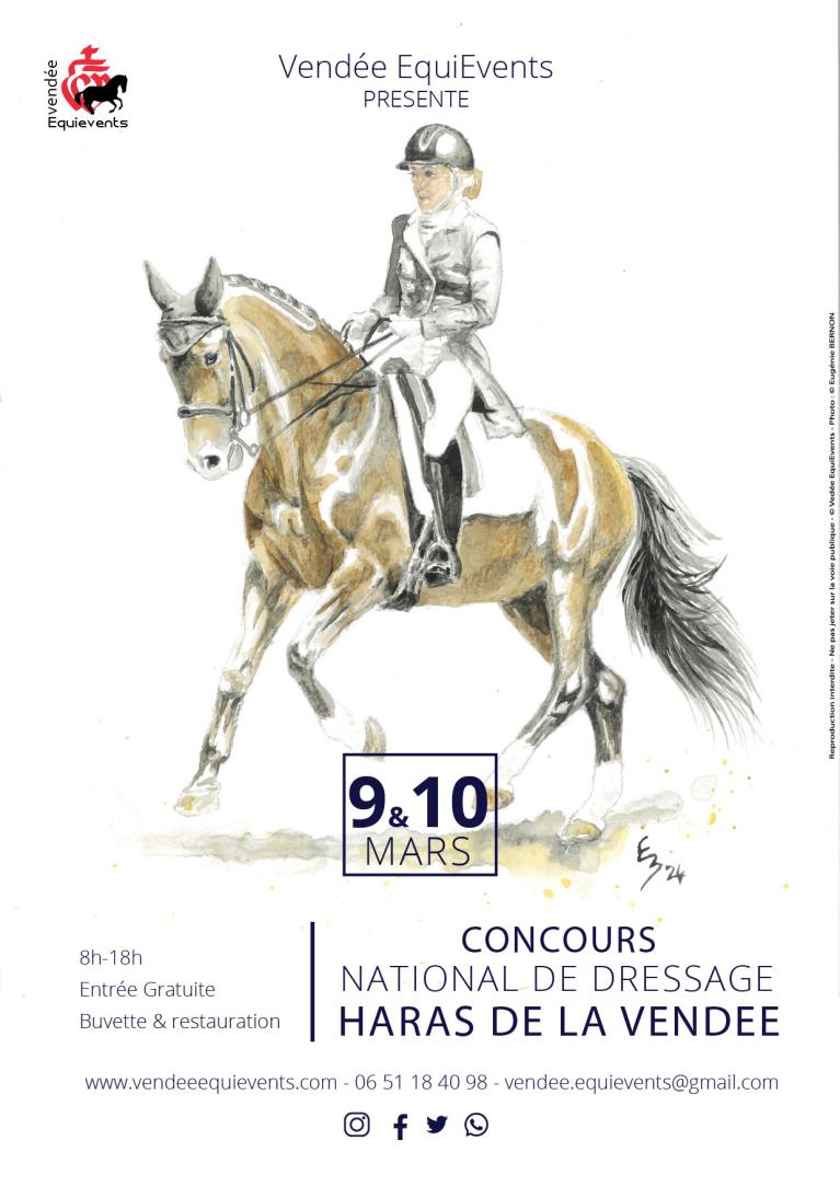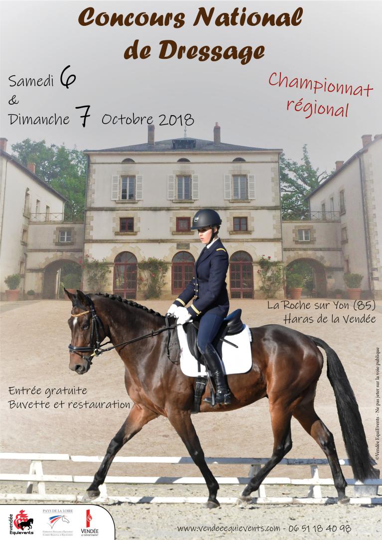 Vendée EquiEvents continue l'organisation pour la sixième année consécutive son Concours National de Dressage Amateur, Pro et Club dans le célèbre et magnifique cadre du Haras de la Vendée à La Roche sur Yon (85). Cette année le concours est la finale du circuit régional de Dressage des Pays de la Loire. Plus d'une centaine de dresseurs venant de tout l'Ouest sont attendus pour ce grand week-end de spectacle ! Le dressage est la symbiose entre le cavalier et son destrier, l'entente parfaite est obligatoire pour démontrer les plus belles figures naturelles du cheval ! Venez admirer ce moment sportif et décontractant seul ou en famille, en connaisseur ou en néophyte.